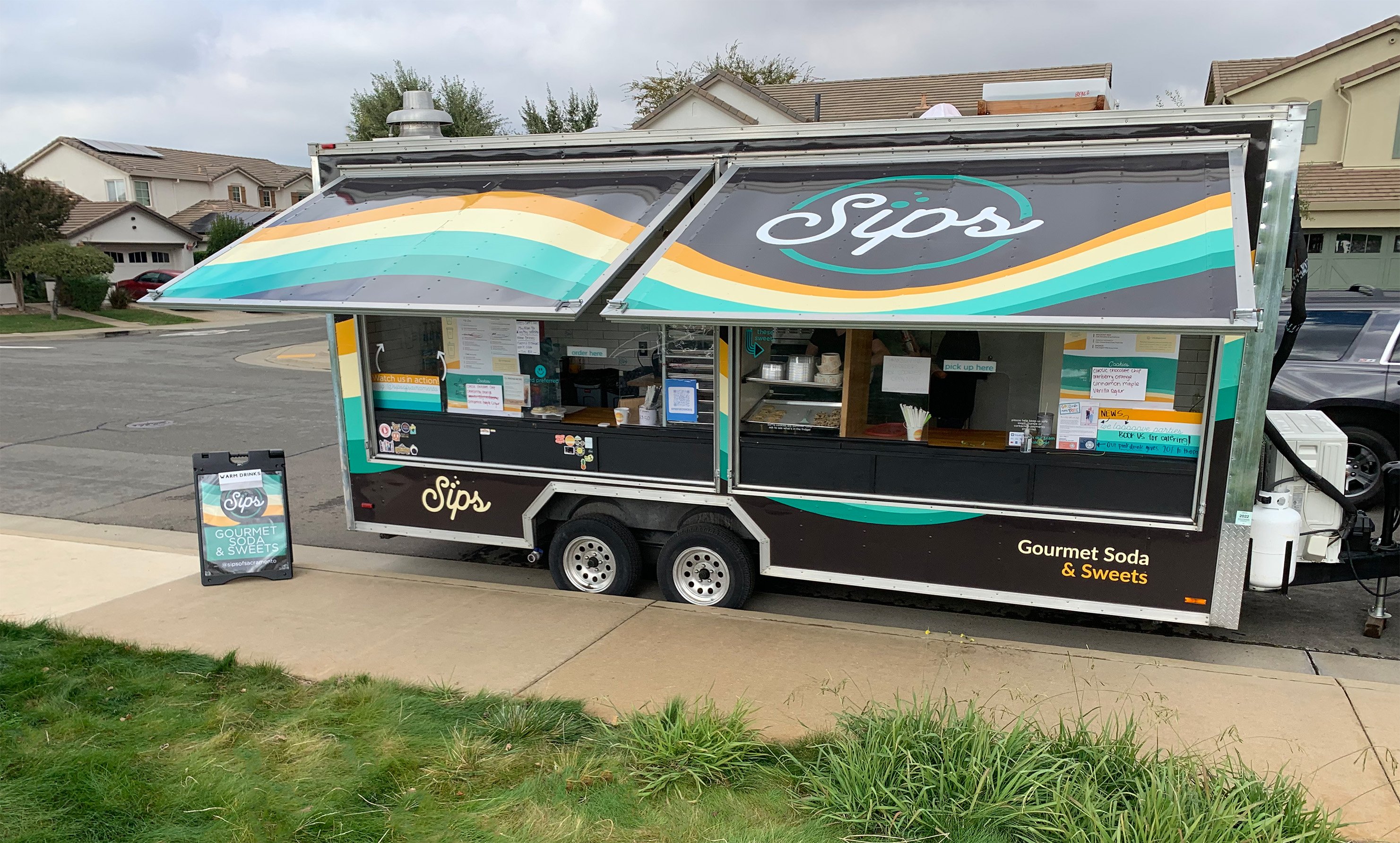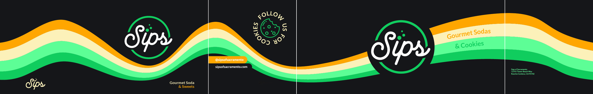 Sips is on a mission to bring gourmet soda & sweets to the Sacramento area, so I brought their brand to life with a clean logo, a fresh trailer wrap, and a brand-new menu to tie it all together.