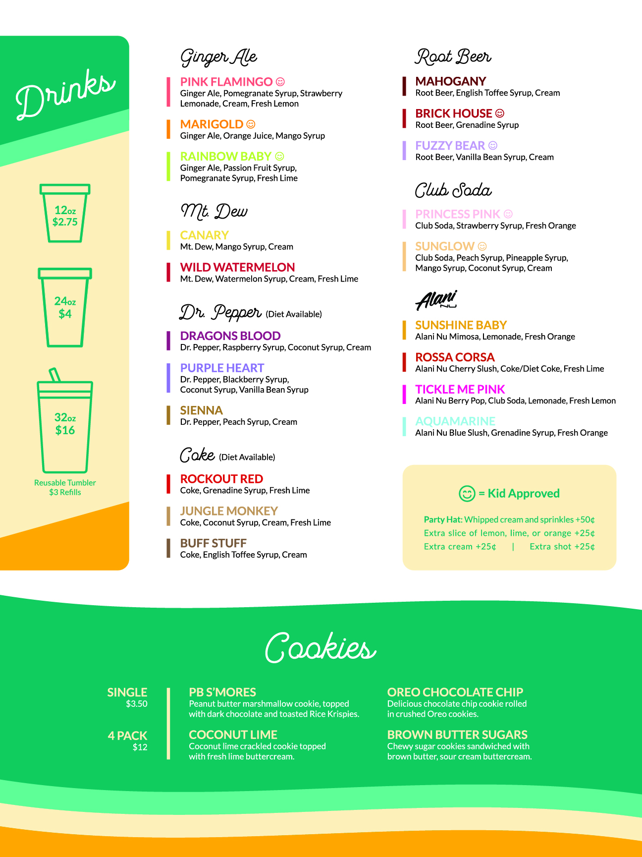 Since color is at the core of the Sips brand, each drink name is based on the color of the actual drink.